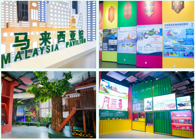 來到馬來西亞館,各類富有當(dāng)?shù)靥厣娜宋娘L(fēng)俗與“僑元素”生動(dòng)呈現(xiàn):從標(biāo)志性的雙子塔、五大經(jīng)濟(jì)走廊,到傳統(tǒng)巴迪布、高腳屋和榴蓮樹造景,無不喚起代表團(tuán)的熟悉與親切之感。館內(nèi)還陳列了燕窩、巧克力、白咖啡等特色商品,進(jìn)一步增強(qiáng)了實(shí)地體驗(yàn)的氛圍。大家紛紛就館內(nèi)已入駐商品的運(yùn)營推廣情況,進(jìn)行詳細(xì)的了解和探討。在得知各館均有相應(yīng)館長對(duì)商品進(jìn)行管理與推介時(shí),代表團(tuán)更是稱贊連連。